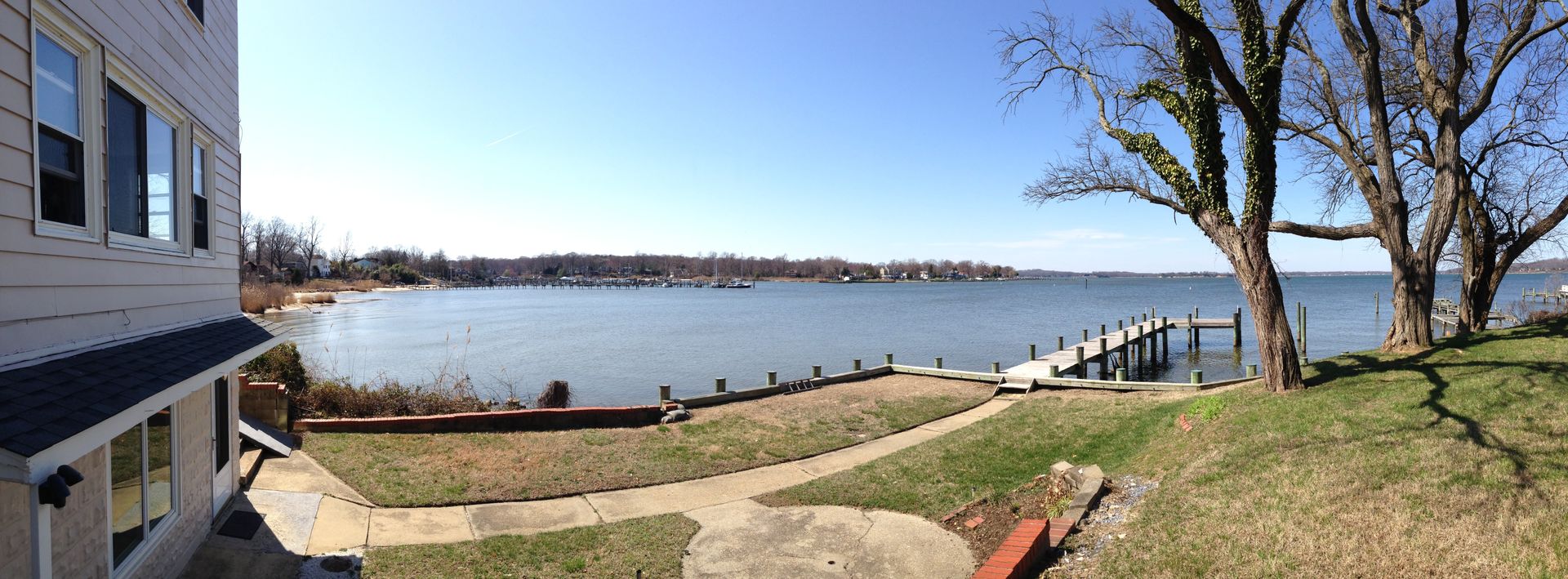 Studio first level FLAT – 1 large room with kitchen, separate full bath and separate closet on waterfront property at end of River Bay Road. Unit faces STUNNING panoramic views of the Magothy River and Chesapeake Bay. Flat has separate dual heating and cooling unit. Property has 4 total units, private dock and common area basement with coin laundry.